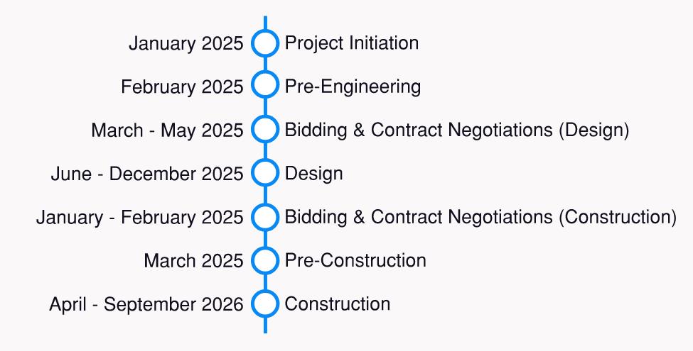 街道的北半部分将由私人开发商设计和建造,预计将于 2025 年夏季完工。该市将管理街道南半部的设计和施工。预计设计和施工完工日期分别为 2025 年 12 月和 2026 年 9 月。